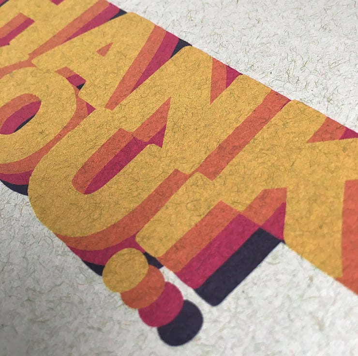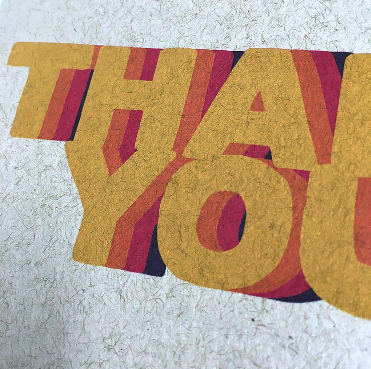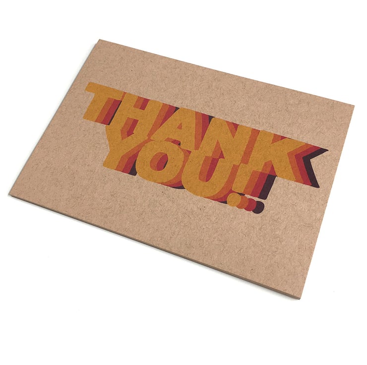 A set of twelve eco-friendly retro 'thank you' postcard notecards with envelopes. These wonderful A6 'thank you' cards are printed in beautiful repeat typography to one side. The reverse has been left blank for your own message. What better way to express your thanks!