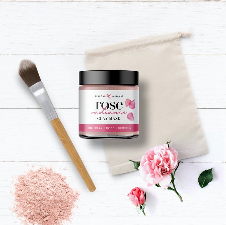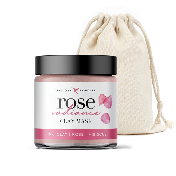 Rose Radiance Clay Face Mask with pink clay, rose petals, hibiscus, bamboo, rose