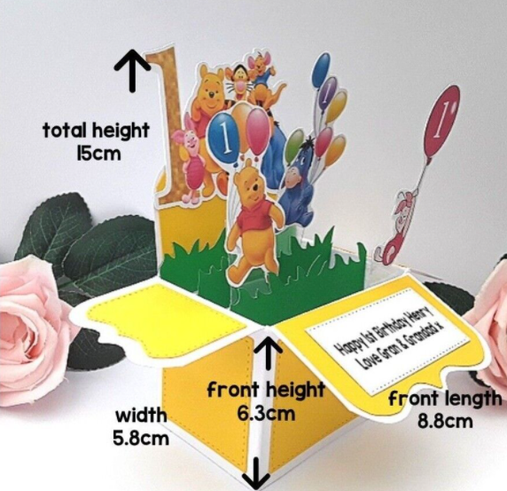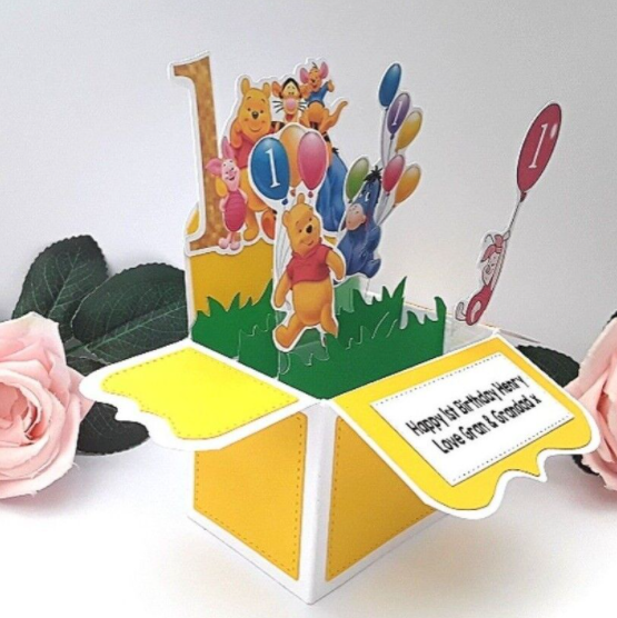 Personalised Winnie Pooh Pop Up Card Box, Personalised Winnie Pooh Centrepiece (ANY AGE)