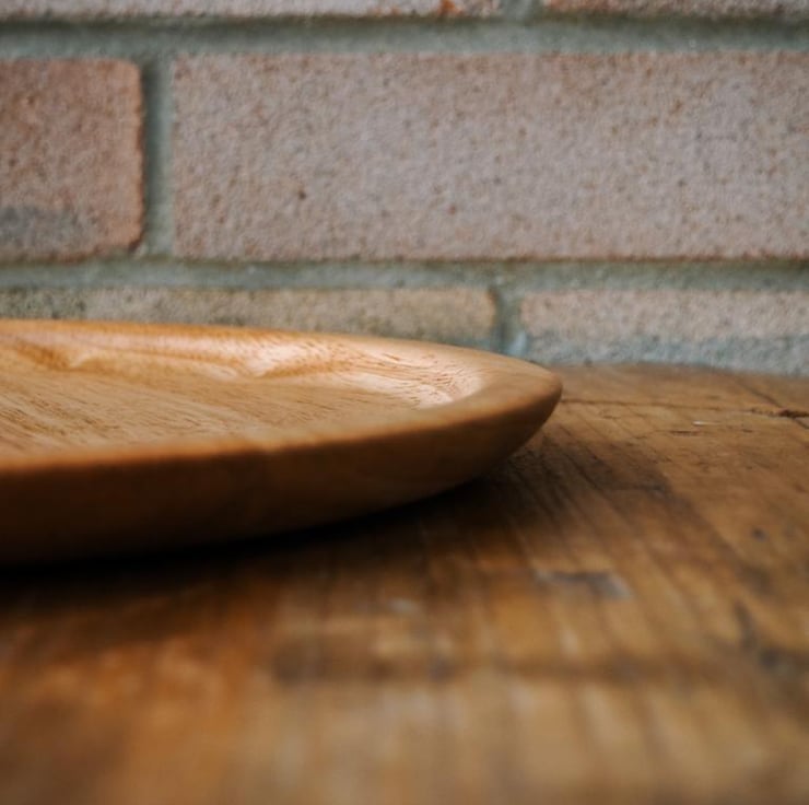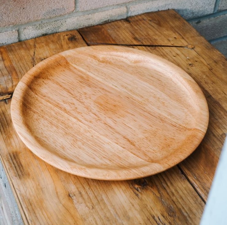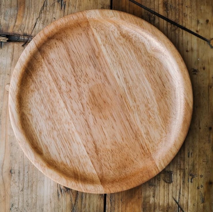 This platter has been handmade on our woodturning lathe from a broken Beech dining chair. It measures 30cm across and is ideal for use as a serving platter or fruit dish.