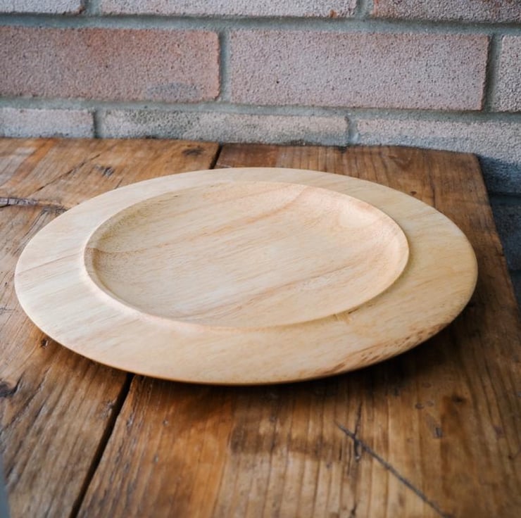 This platter has been handmade on our woodturning lathe from an old Beech dining chair. It measures 29cm across and is ideal for use as a serving plate or fruit dish.