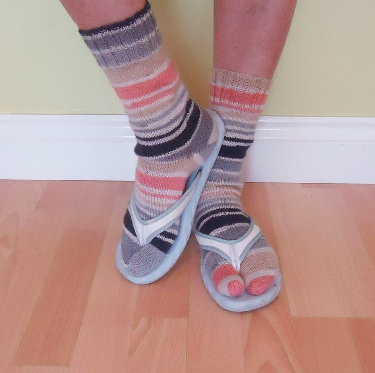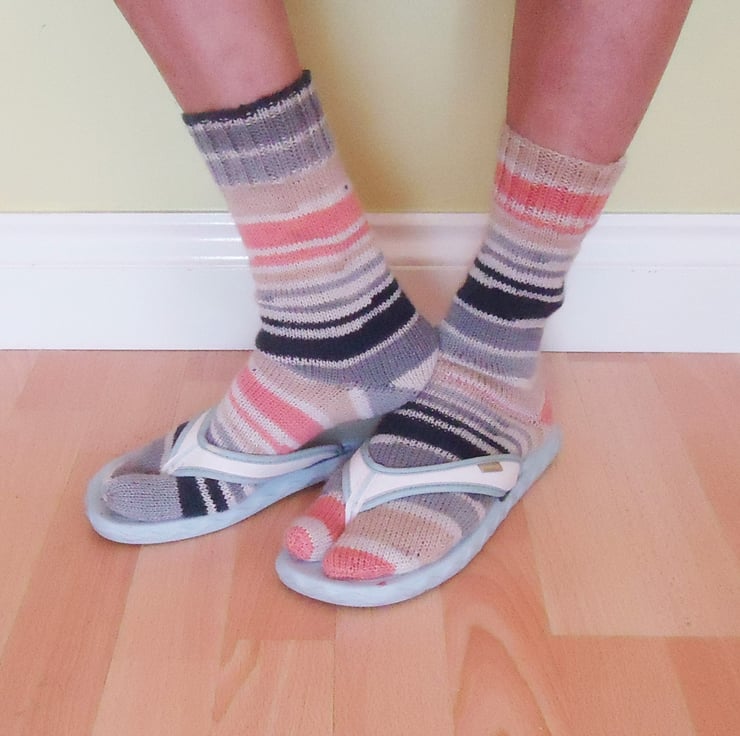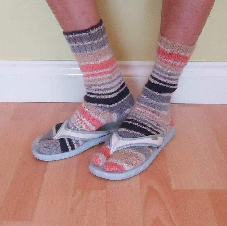 These flip flops socks are hand knitted with superwash wool, polyamide, bamboo yarns.