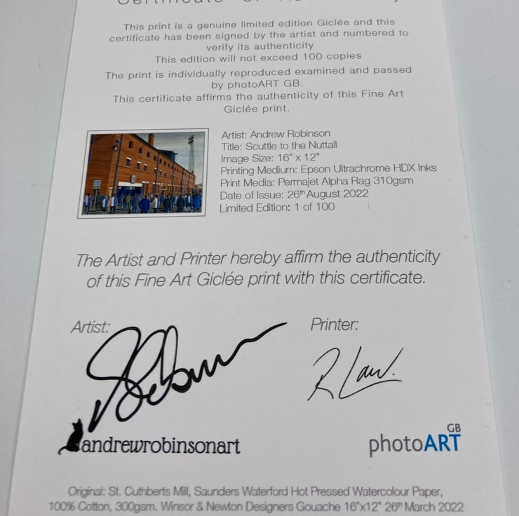 Titled ‘Scuttle to the Nuttall’ this is a unique Blackburn Rovers F.C limited edition print direct from myself the artist. My artworks are a celebration of the match day experience and of stadium architecture.