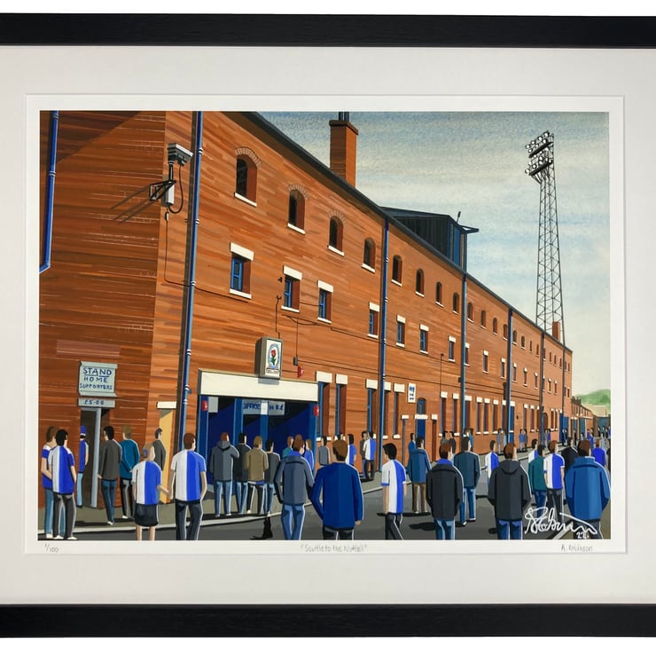 Titled ‘Scuttle to the Nuttall’ this is a unique Blackburn Rovers F.C limited edition print direct from myself the artist. My artworks are a celebration of the match day experience and of stadium architecture.