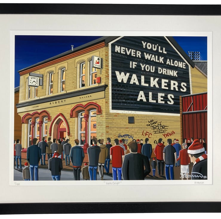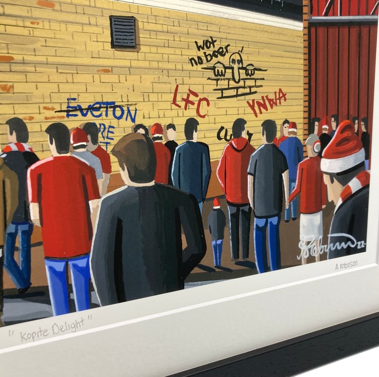 Titled ‘Kopite Delight’ this is a unique Liverpool F.C limited edition print direct from myself the artist. My artworks are a celebration of the match day experience and of stadium architecture.