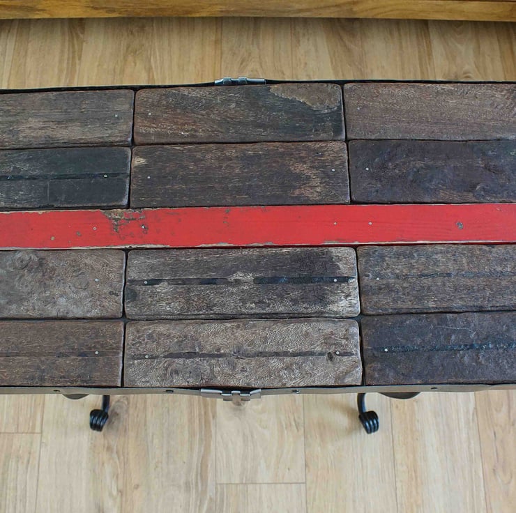 Introducing this handmade reclaimed wood rustic industrial coffee table, designed to add a touch of warmth and character to any living space. Crafted from high-quality reclaimed hardwood, this table is unique and one-of-a-kind, featuring its own distinctive markings and imperfections that lend to its rustic charm.