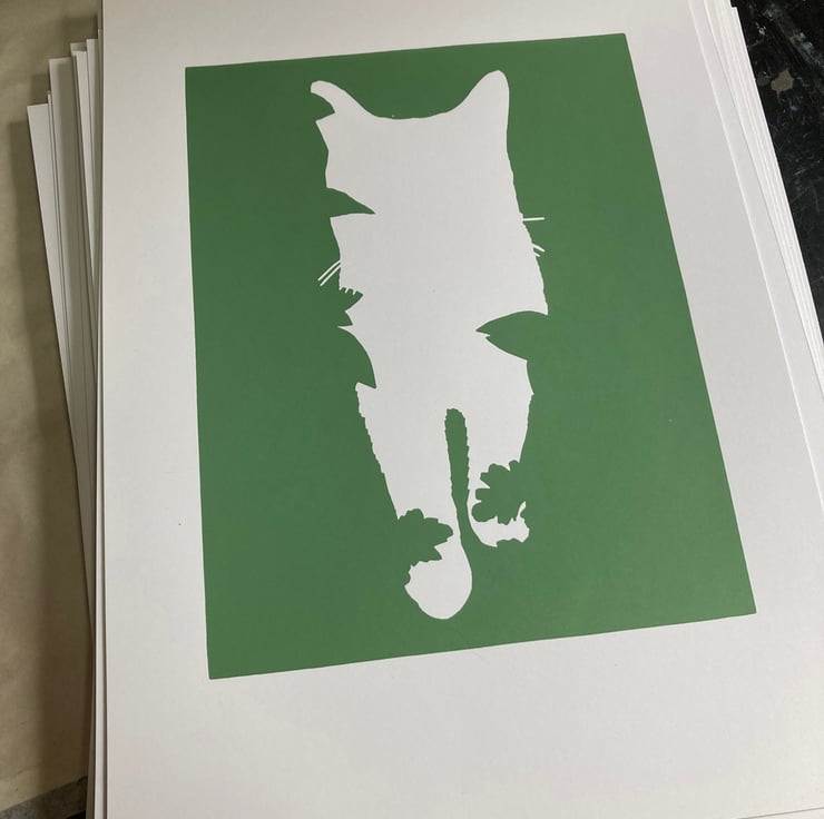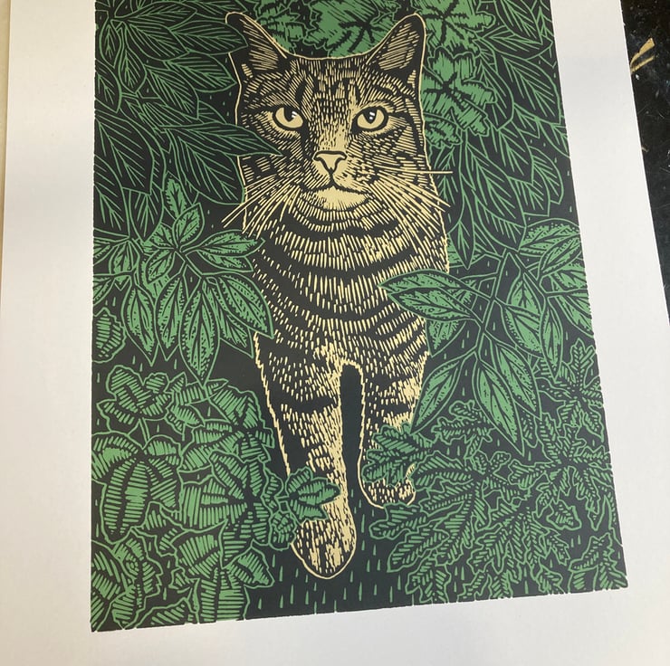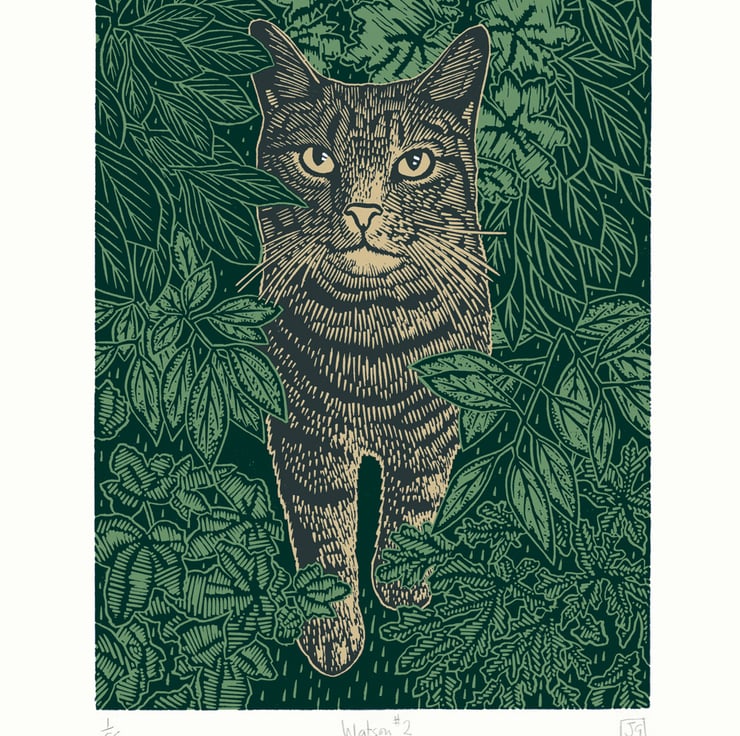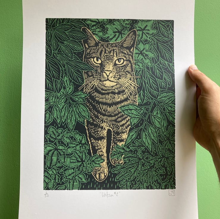 Watson the cat! The first print I ever make back in 2002 was of a cat, so it is very satisfying to return to this subject matter, with one who is now a member of our family!