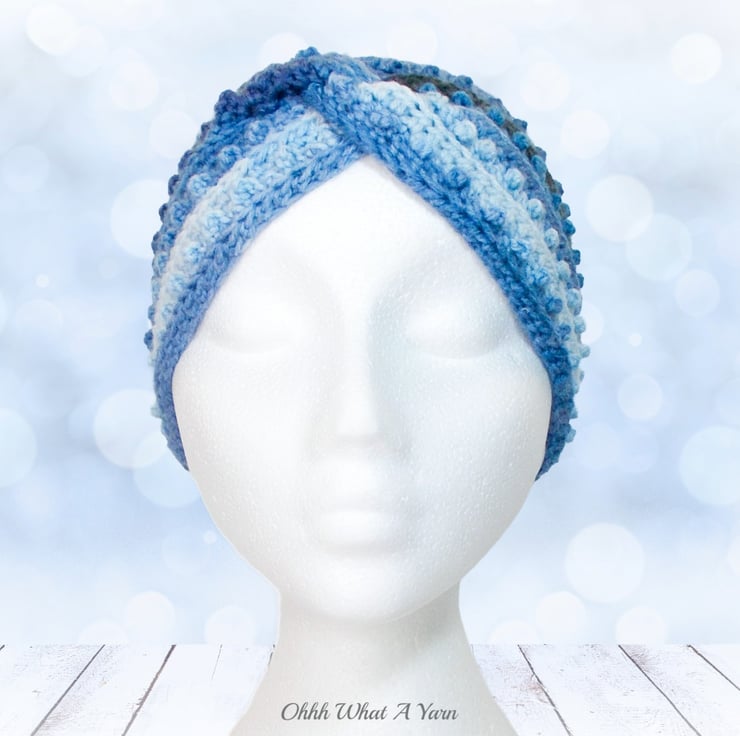 The pattern has ridges and small bobbles creating a lovely effect and it has a twist that can be worn either at the front, back or side of your head.