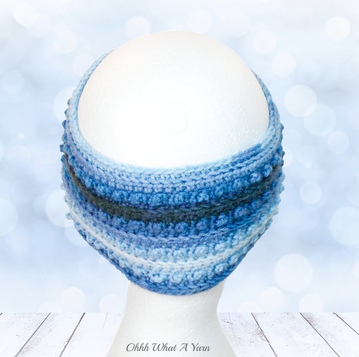 This gorgeous one size ladies ear warmer/headband has been crocheted using a gorgeous 100% premium acrylic yarn in different shades of blue,