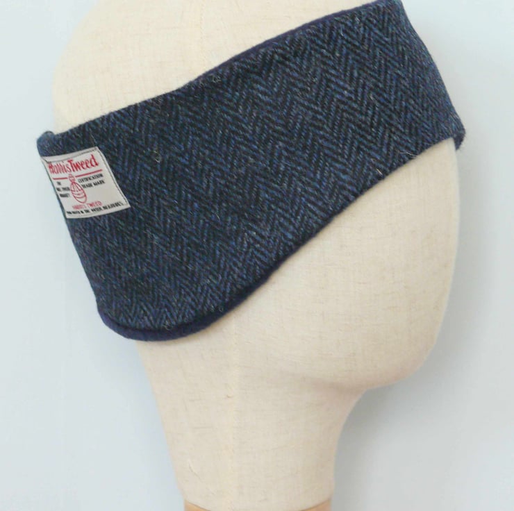 Harris Tweed Headband using Blue and black herringbone Harris Tweed. Lined with blue fleece.