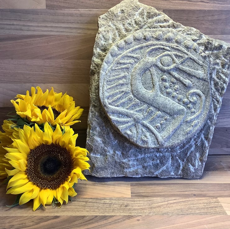 An Anglo Saxon Sceat carved in stone. Featuring a dragon. Ideal gift for a coin collector or metal detectorist.