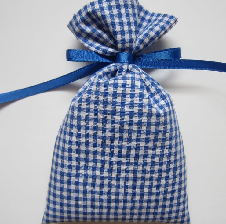 It is filled with Suffolk lavender picked and prepared by me and tied with a blue ribbon bow.