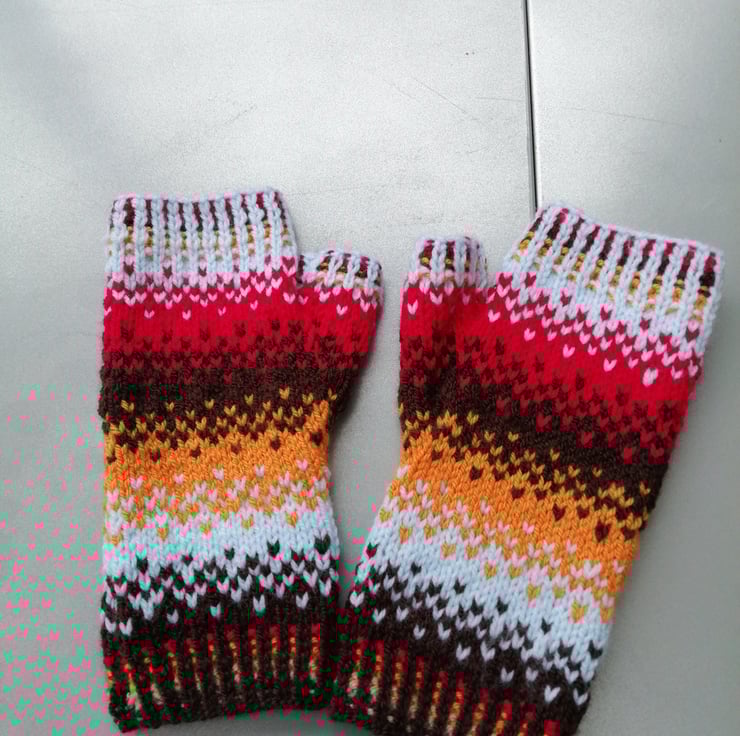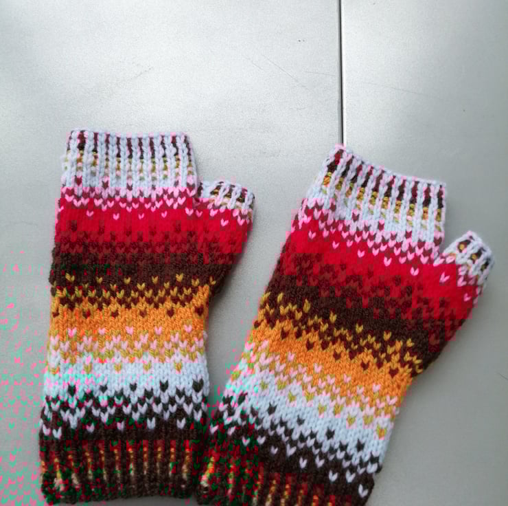 Colourful fingerless gloves, these are ideal when it is getting chilly but you still need to keep your fingers free.