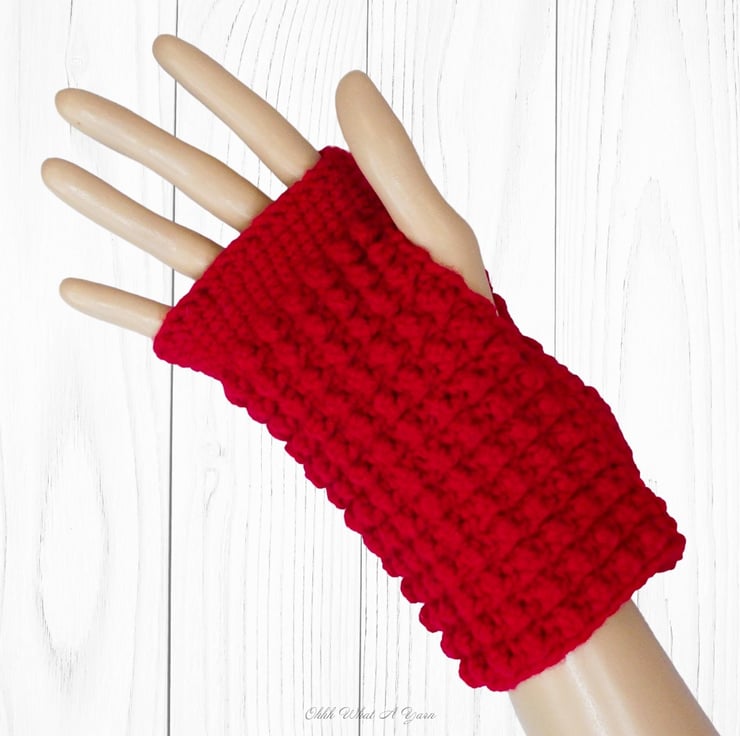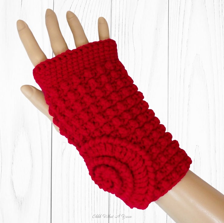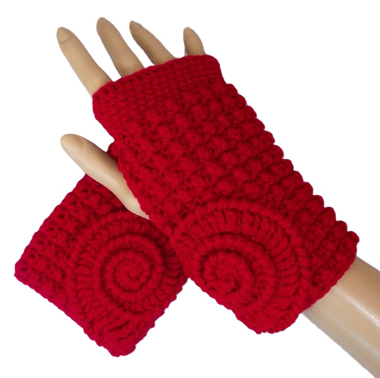 Crochet gloves. Red ammonite ladies crochet gloves, fingerless gloves.