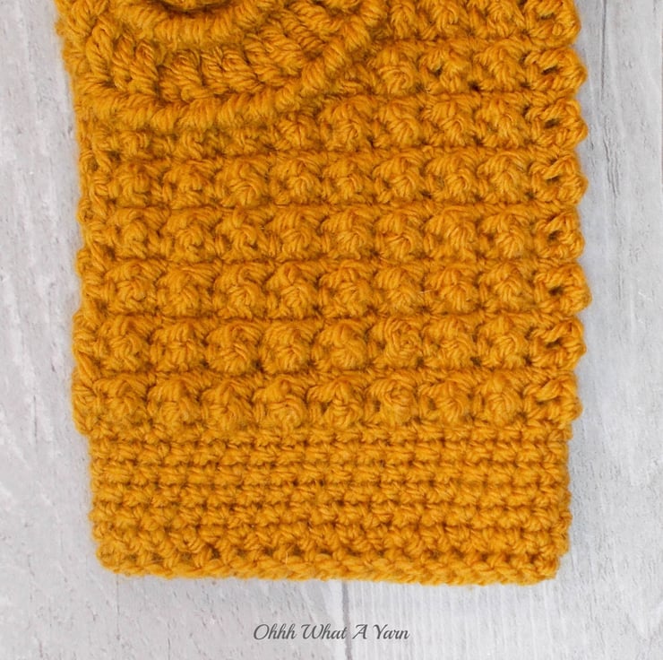 They have a gorgeous swirling ammonite detail on the wrist portion and a beautiful bobble stitch pattern to the main section of the gloves.
