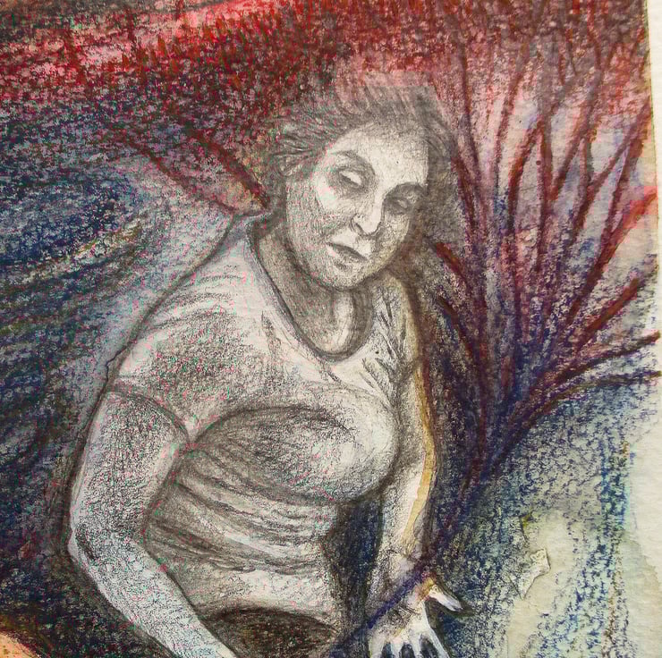 It was created using a mixture of professional grade watersoluble coloured pastels and pencils, ink and graphite pencil on watercolour paper.