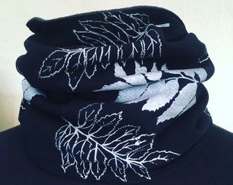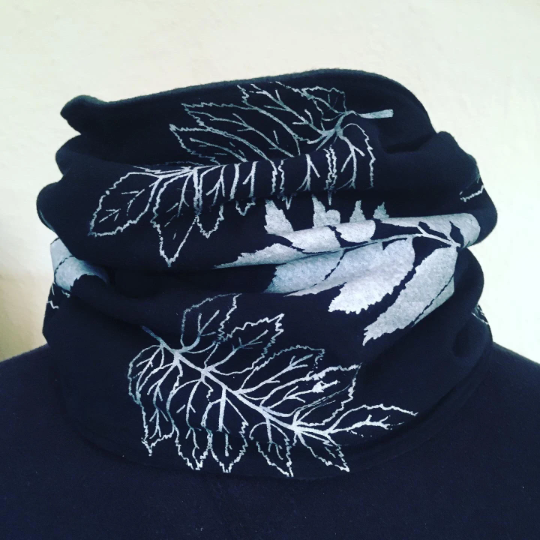 Handmade reversible fleece-lined neck warmer, snood infinity scarf.