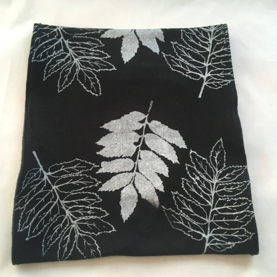 The screenprint on this scarf is derived from a hand-drawn study of leaves, inspired by my rural surroundings.
