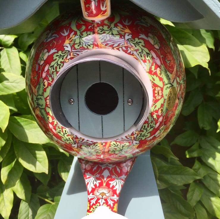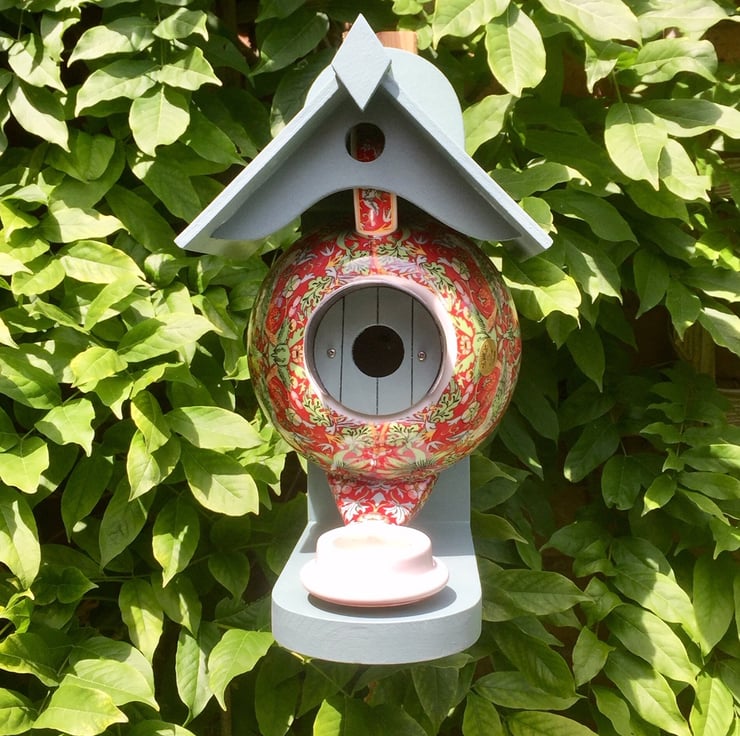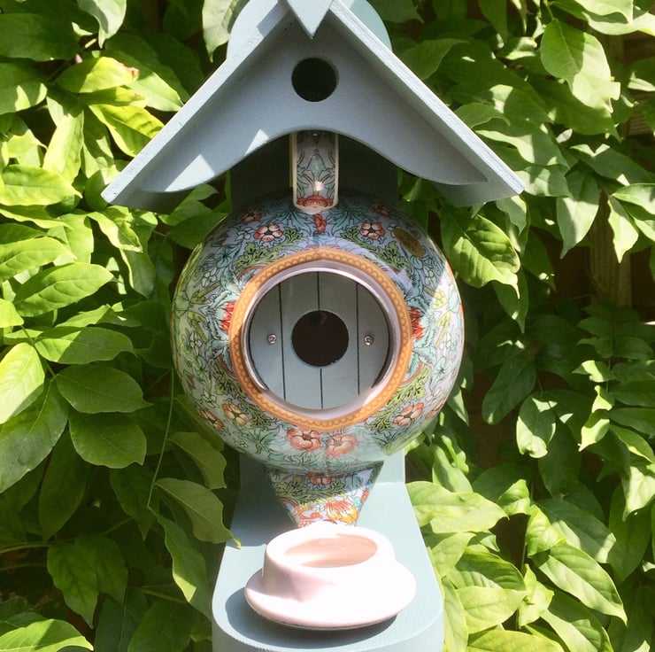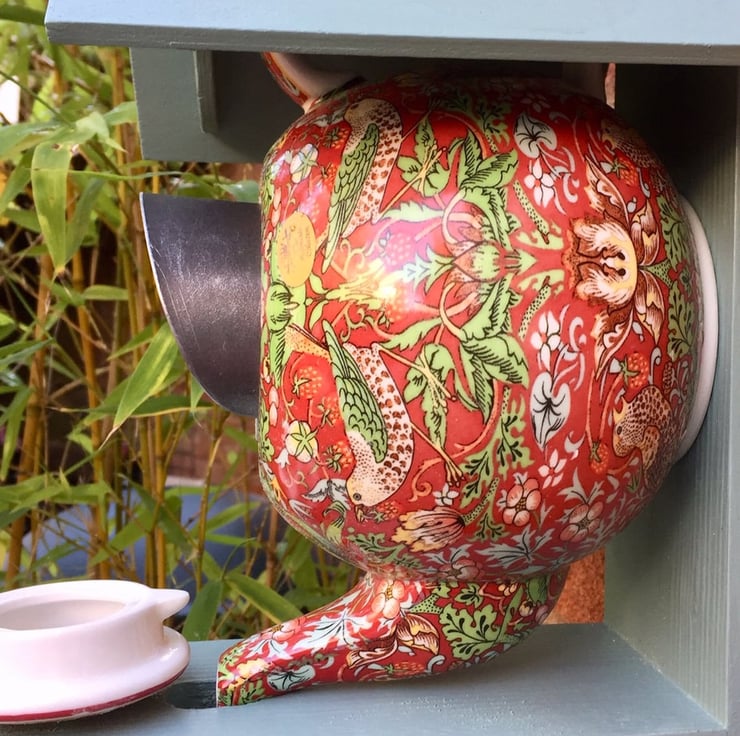 We have used a Teapot with a William Morris Strawberry Thief pattern and attached it to frame with a roof. We have put a removable front for ease of cleaning ( using two small screws)