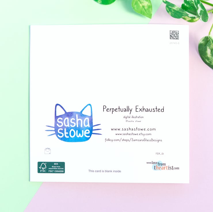 The perfect card for your always tired loved one; a perpetually exhausted pigeon! The design and illustration was done by me and can be found as a sticker as well, which can be added as an extra here. The card is blank inside so you can write your own message.