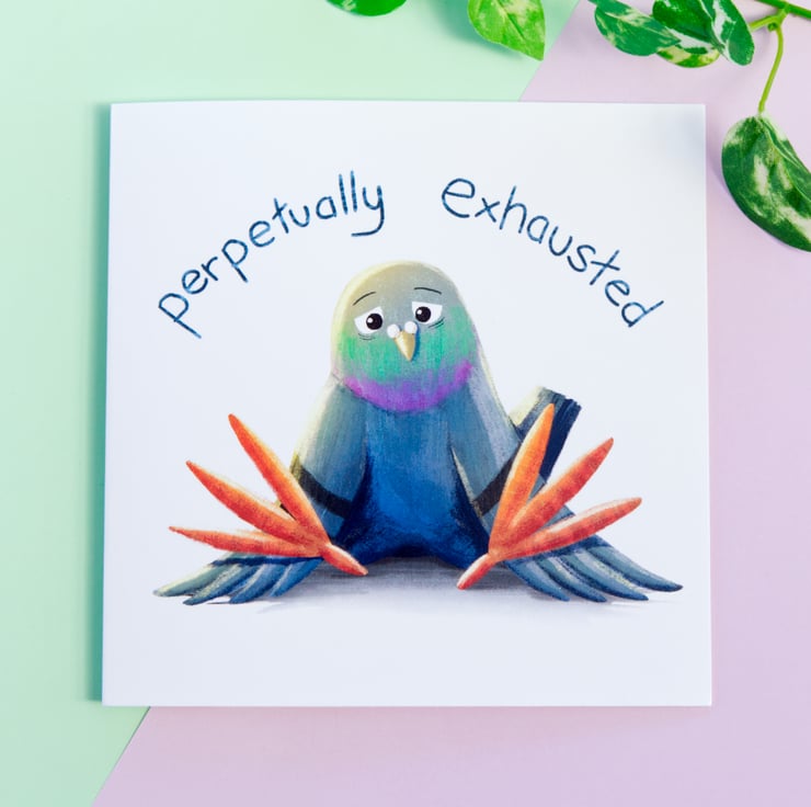 The perfect card for your always tired loved one; a perpetually exhausted pigeon! The design and illustration was done by me and can be found as a sticker as well, which can be added as an extra here. The card is blank inside so you can write your own message.