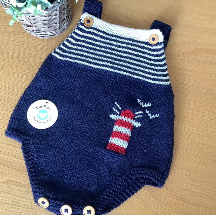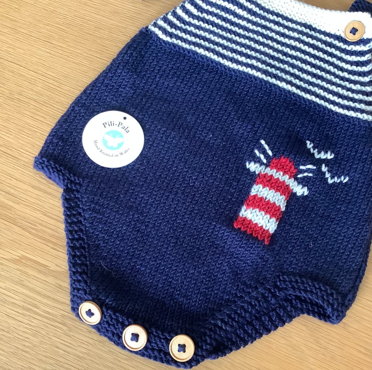 This sweet little romper was hand knitted by me. It is knitted in a cashmere blend wool that is soft and warm for babies but can also be machine washed at 30 degrees.