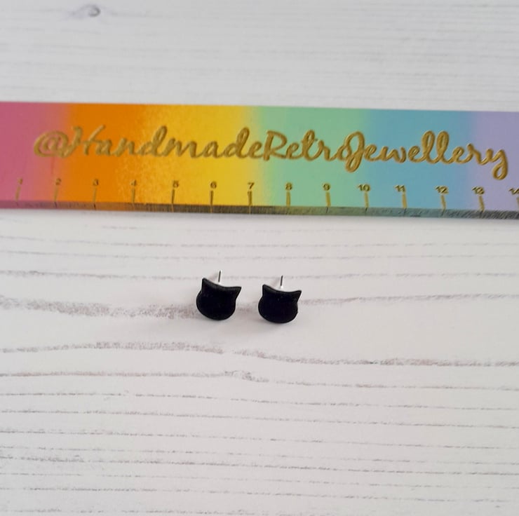 These mini earrings have been carefully hand crafted using black polymer clay, in the shape of black cat faces!