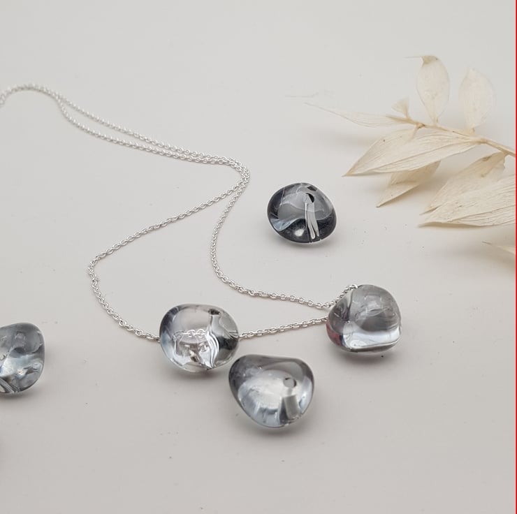 Each drop is different and is threaded with a lovely 1mm slim trace chain - perfect in it's simplicity and each completely unique. They're all different in size and shape, a drop of water frozen in time, and measure around 12mm diameter.