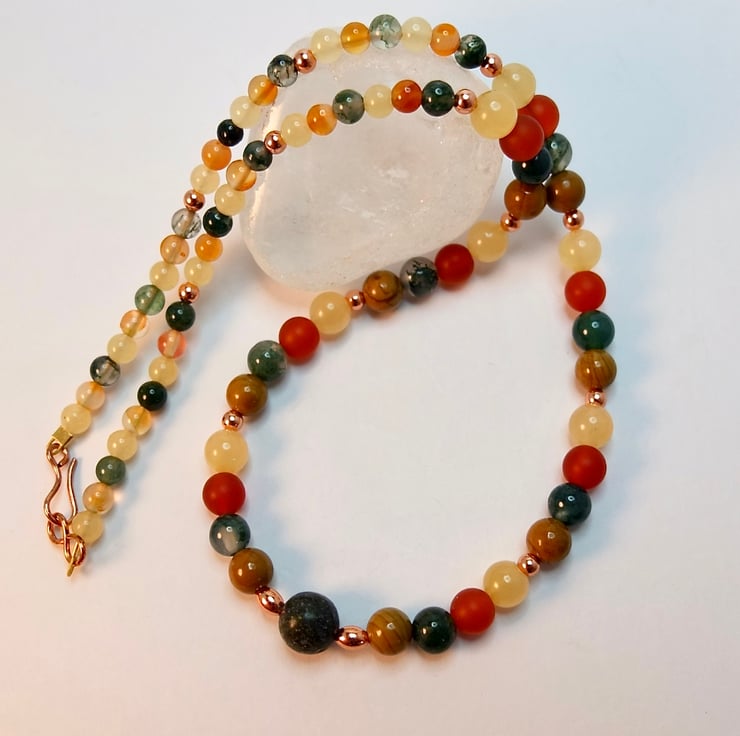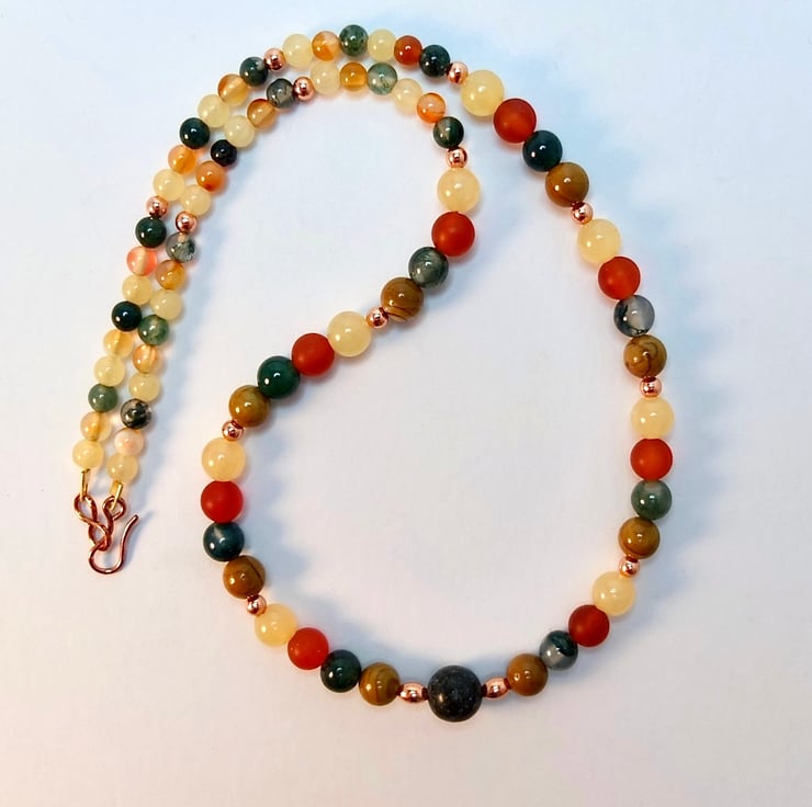 Pretty semi-precious stone beaded necklace in 'Shades of Autumn' colours.