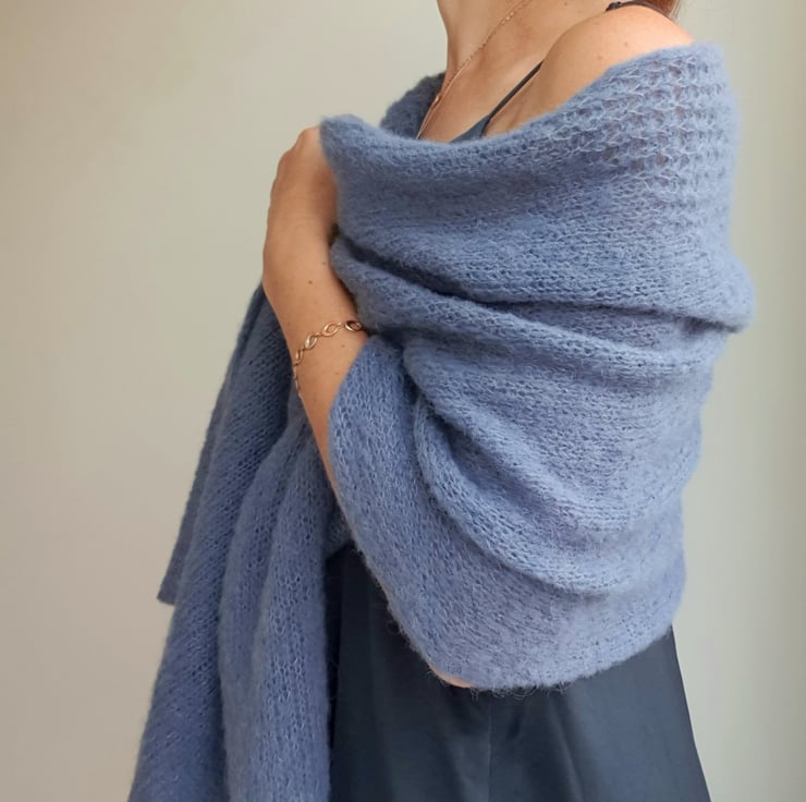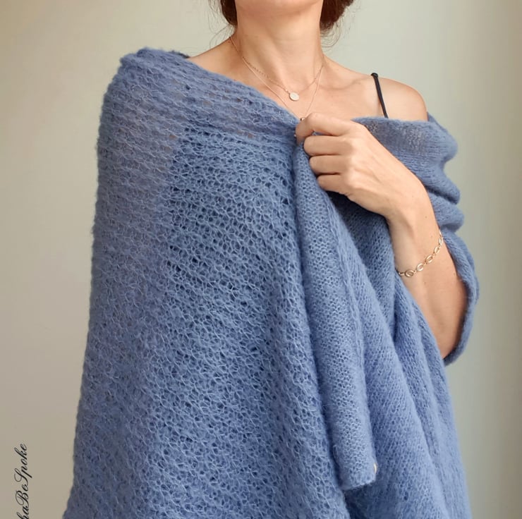 It hand knitted from beautiful mix of 77% alpaca and 23% silk yarn.