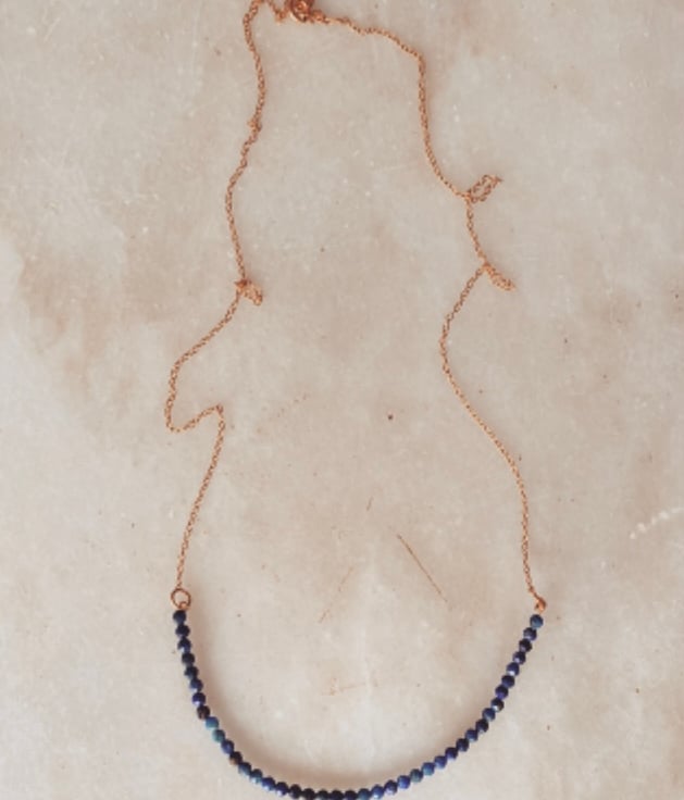 3mm Rose cut Lapis Lazuli gemstones threaded on 18 carat gold vermeil wire and chain.