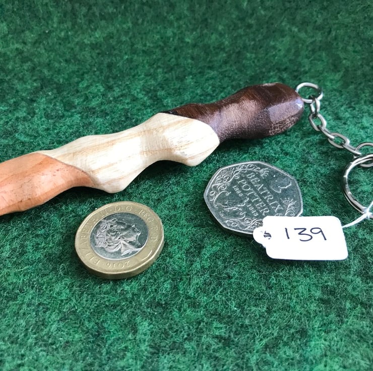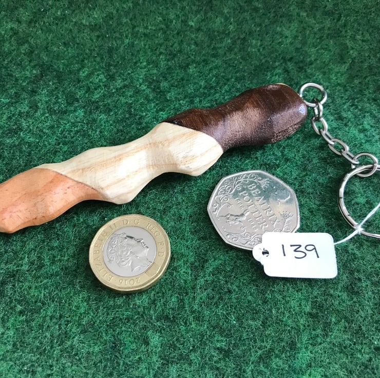 This is a Man sized palm comforter which is on a keyring. It is approx 4 inches long and 25 to 30mm wide. This makes a comfortable grip and is hand made from American black walnut, english ash and Latvian larch wood.