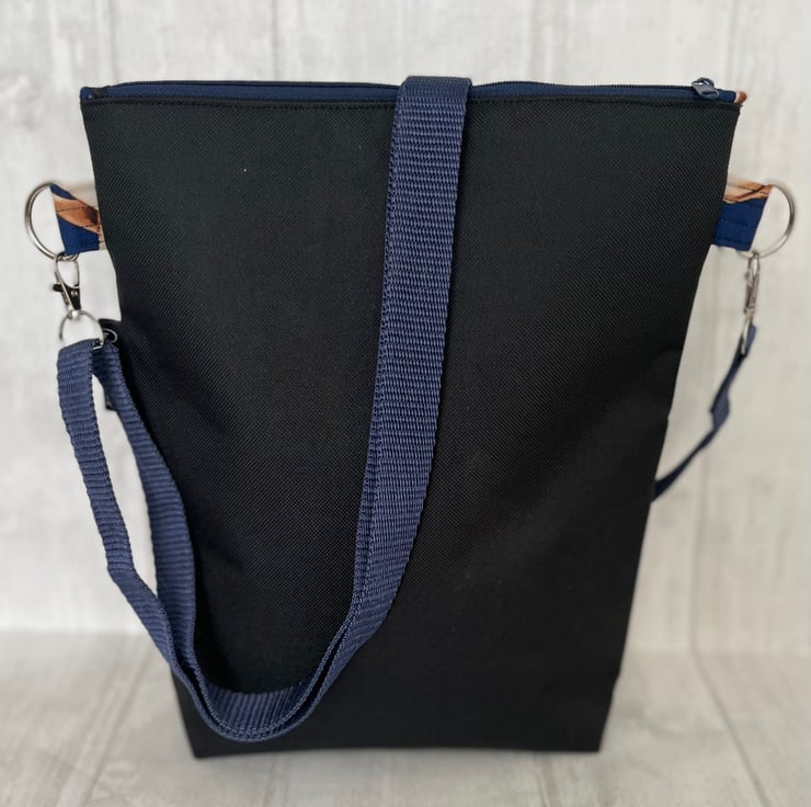 The strap is a waterproof polypropylene and is adjustable up to approx 150 cms ,with detachable metal swivel connectors, making it easy to change strap if needed without replacing the whole bag, The strap can also be adjusted to wear the bag around your waist.