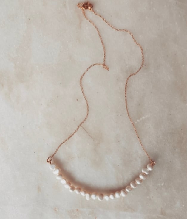 Freshwater pearls threaded on 18 carat gold vermeil wire and chain.