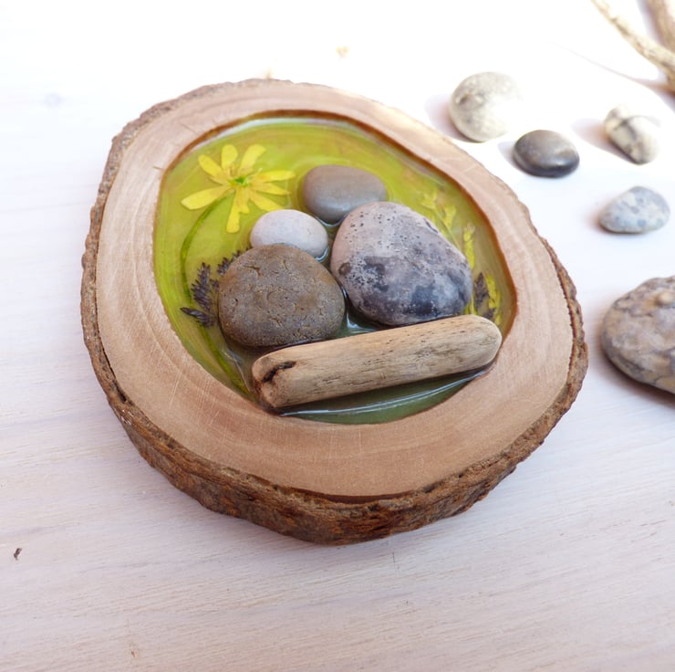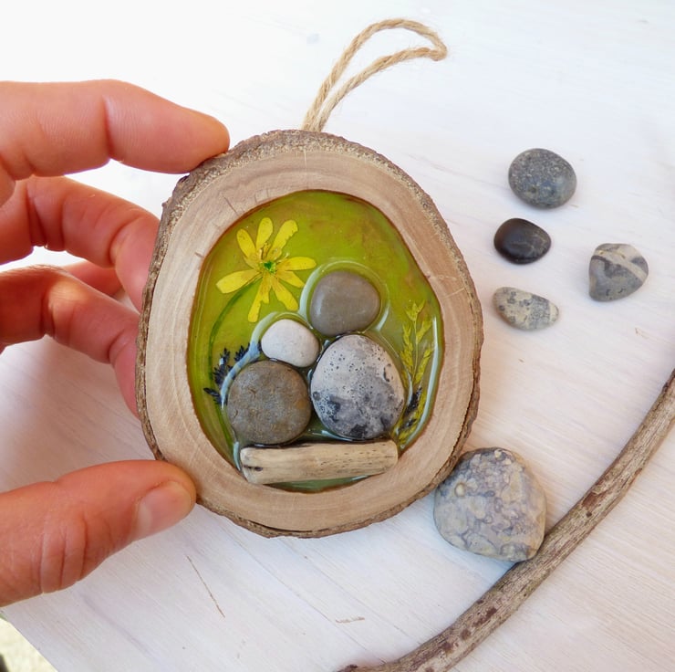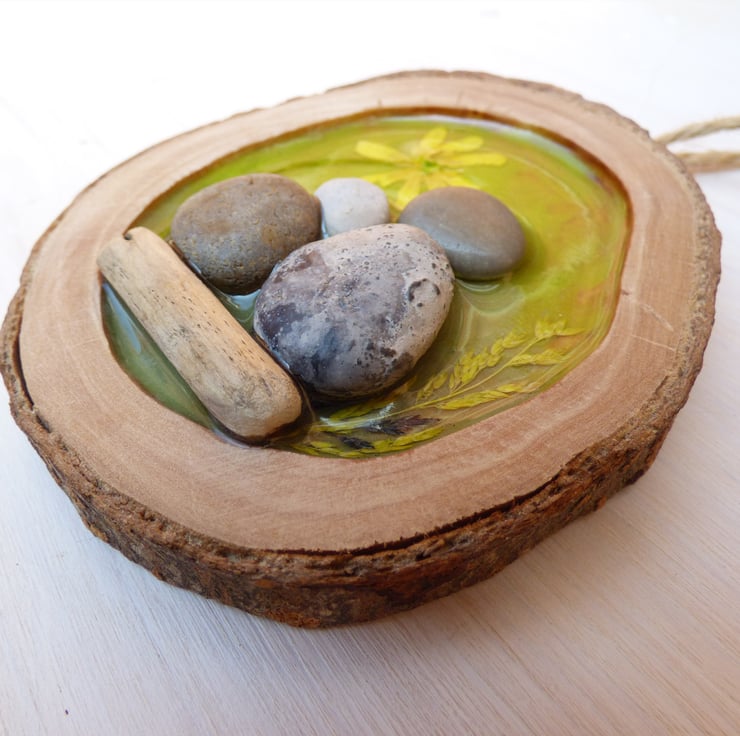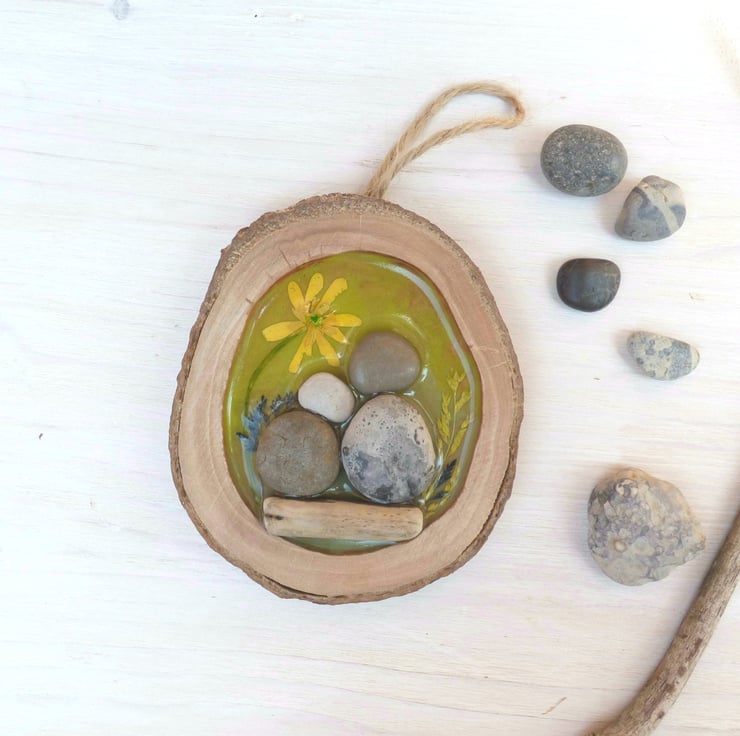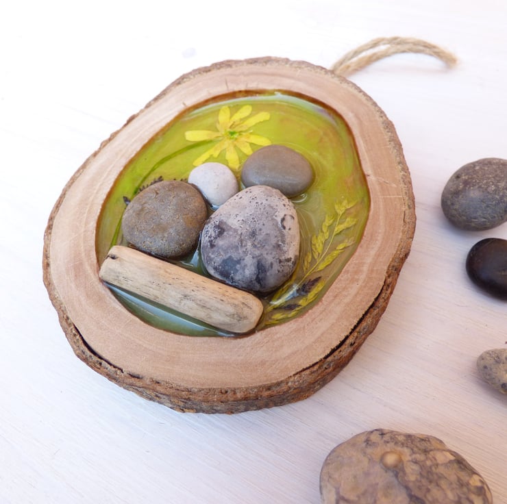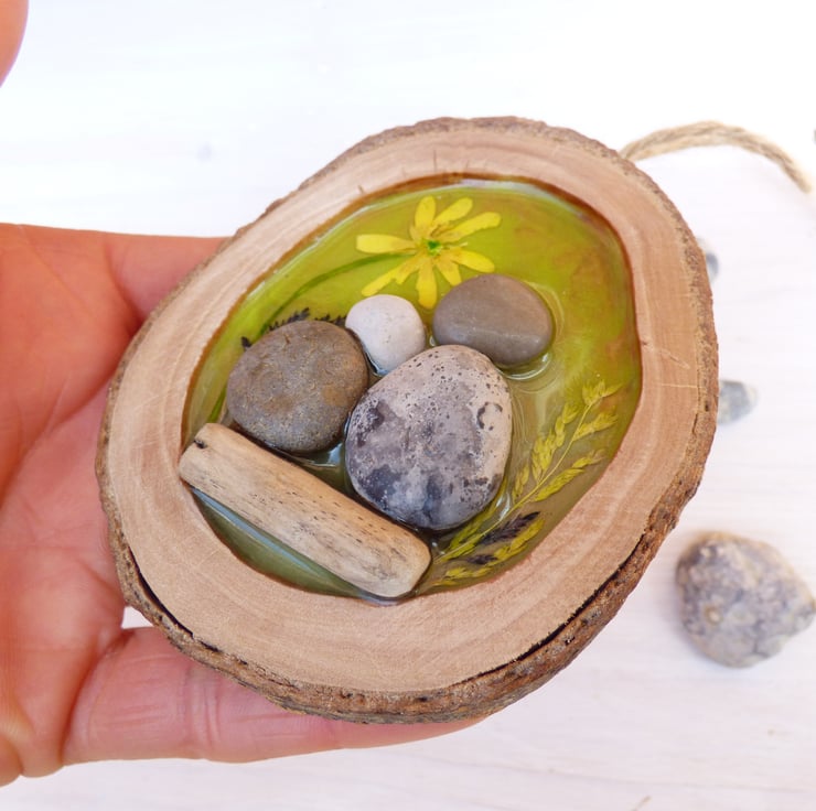 I love being surrounded by nature, particularly woodland and countryside areas! I have worked with resin in the past and I wanted to experiment how I could combine resin, wood and pebble art to create a unique and heart warming decoration.