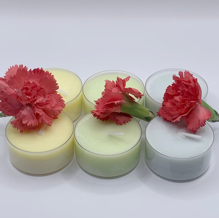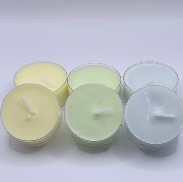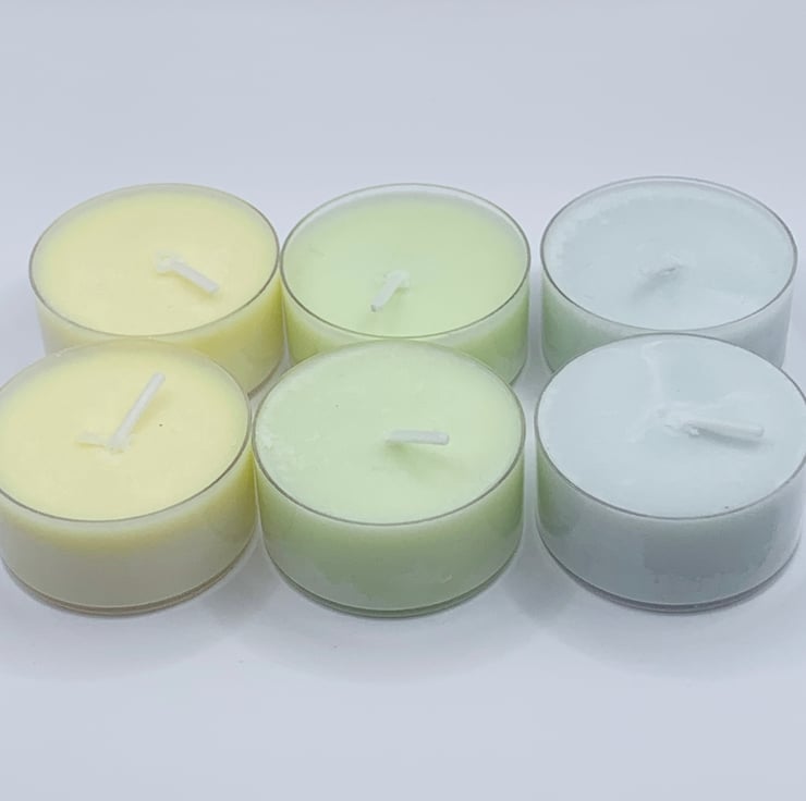 This is a set of 12 soy wax tealights from my bergamot collection. There are 3 different essential oil blends based on bergamot. These have also been dyed yellow, light blue or green.