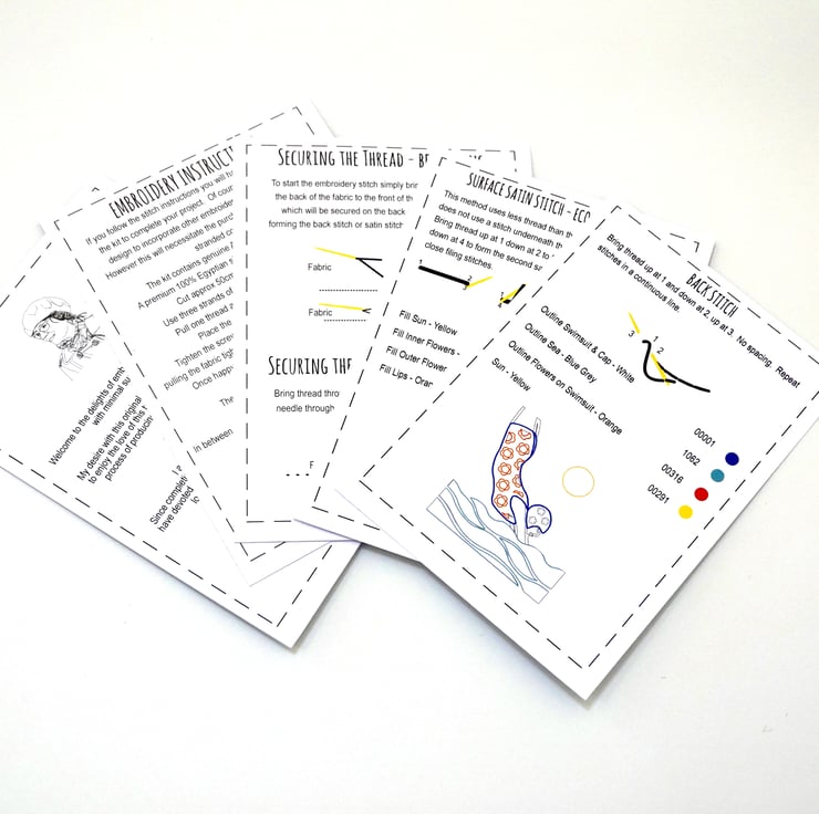 I hope that you will be happy with your wild swim embroidery kit. However, if you have any issues, please contact me within seven days of delivery so that any concerns can be resolved. Any returns must be in perfect condition, in their original packaging, Buyers are responsible for return shipping costs. Thank you, Regards Monica