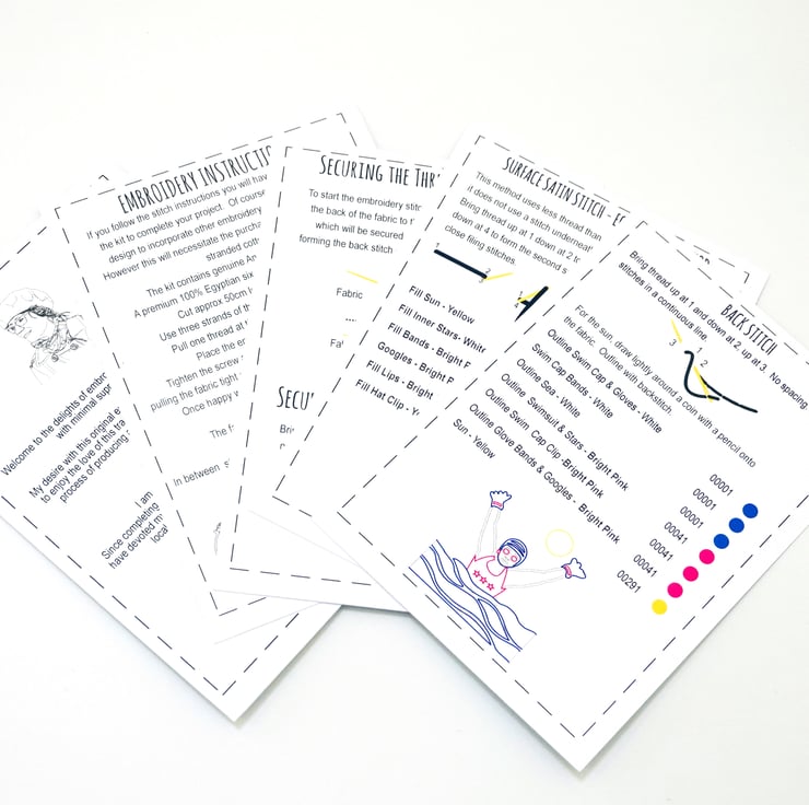 I hope that you will be happy with your wild swim embroidery kit. However, if you have any issues, please contact me within seven days of delivery so that any concerns can be resolved. Any returns must be in perfect condition, in their original packaging, Buyers are responsible for return shipping costs. Thank you, Regards Monica