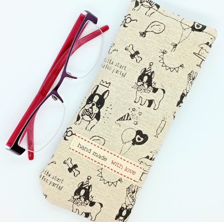 It is wadded to protect your glasses and features a handmade with love label on the back. It is lined in black cotton.