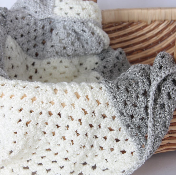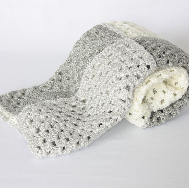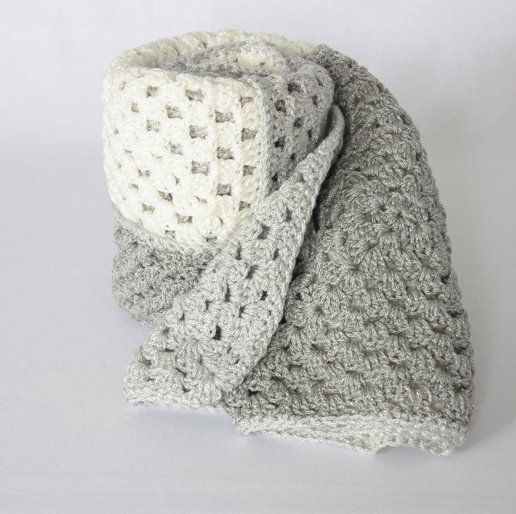Granny Blanket, throw, grey and cream baby blanket or throw,