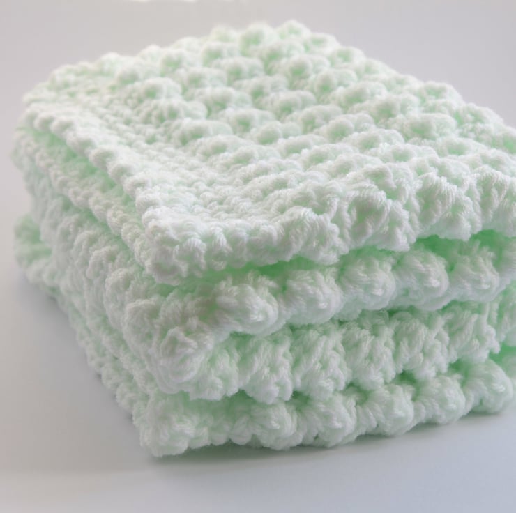Made so thick and chunky by crocheting both green and white yarn together at the same time.