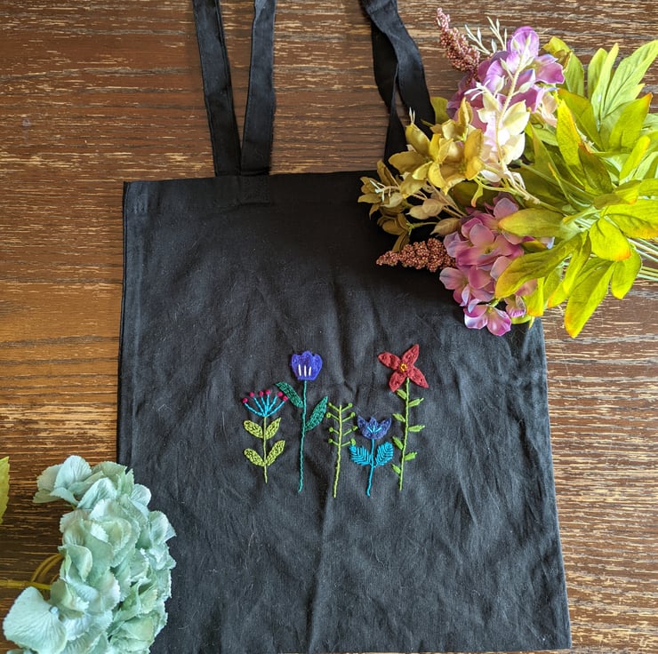 Scandi inspired black tote bag. Measures approximately 36cms by 40cms.