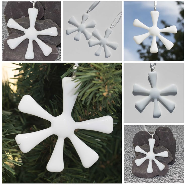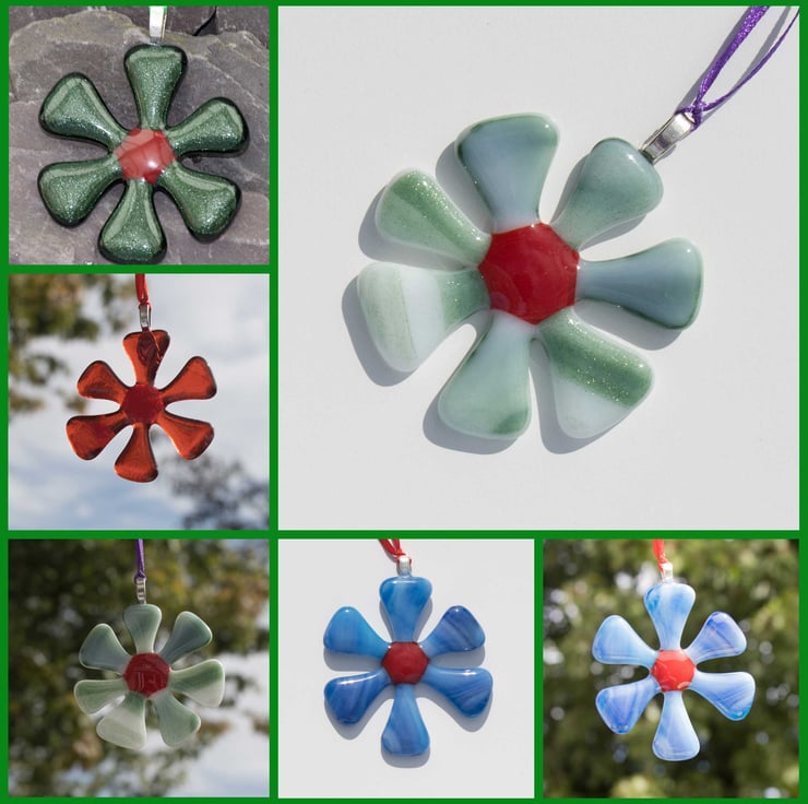 The final photo shows our Fused Glass Flowers which are similar to these snowflakes but feature coloured glass. They are also featured in the shop