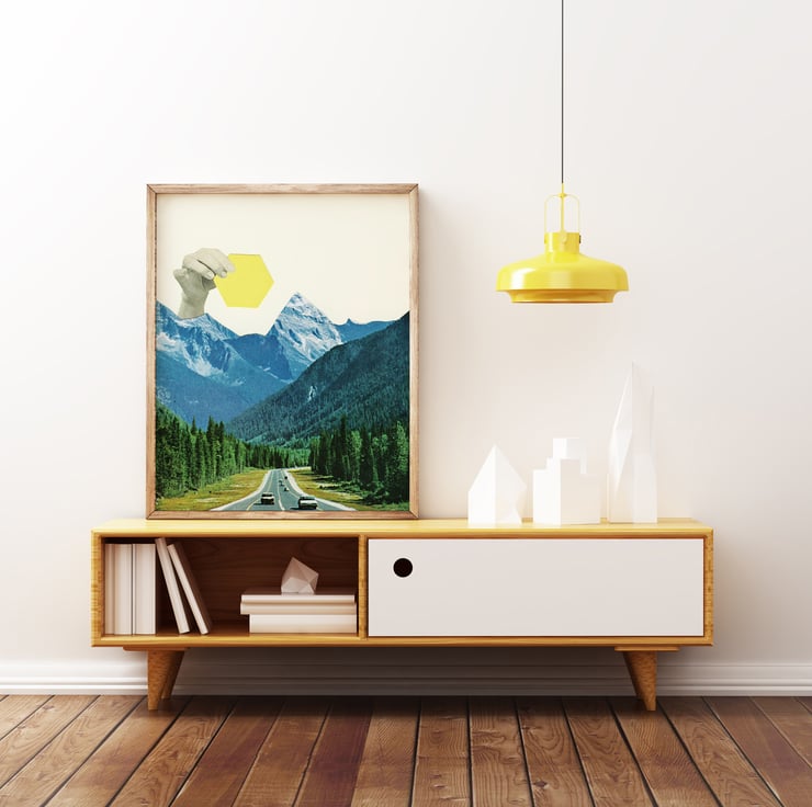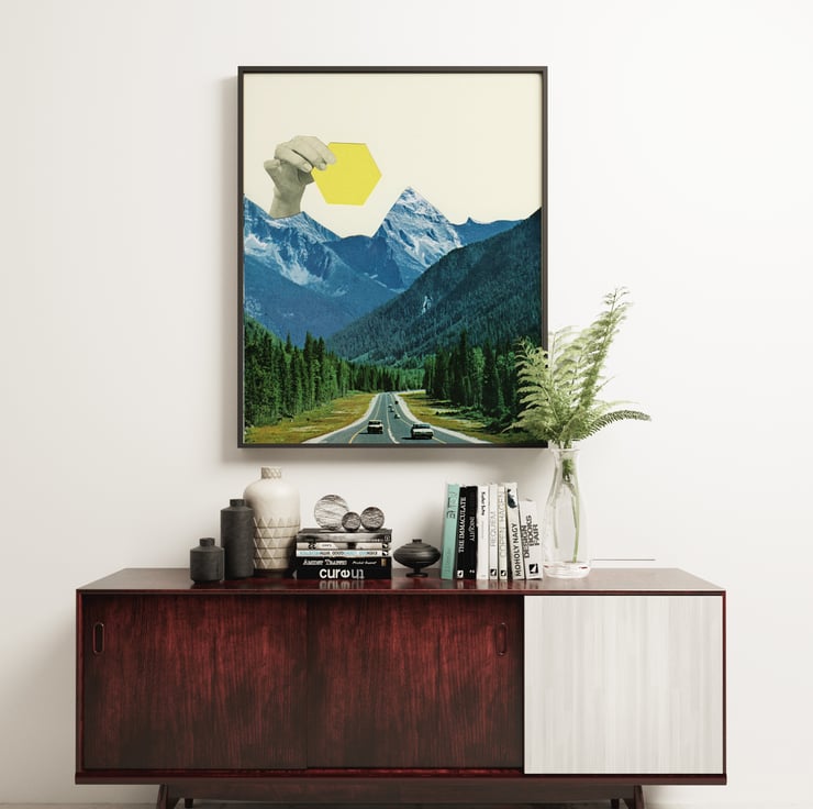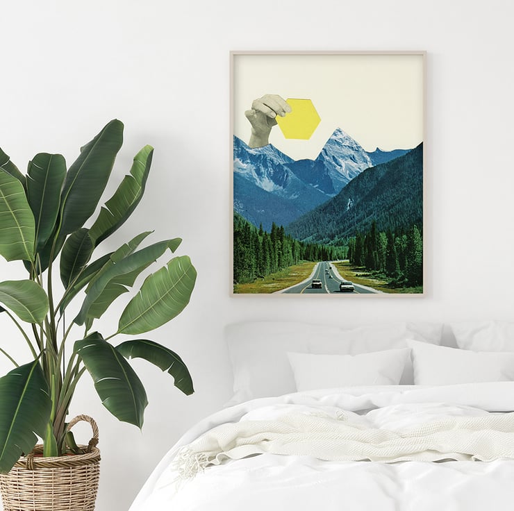 A surreal mountain print. Perfect for any room in need of fun and colour.