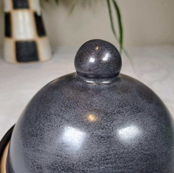 A hand made butter dish, big enough for half a pat of butter.