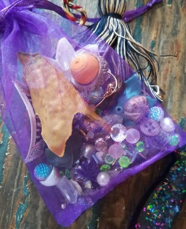 A bag of 'goblin confetti' (perfect for bowls and displays these confetti bags include trinkets, crystals bits, charms etc)