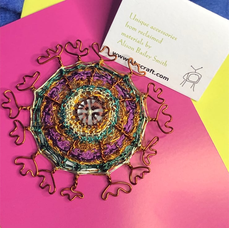 Made in Wirral by me, Alison Bailey Smith. I trained as a jeweller in Edinburgh in the 80s and 90s and have been recycling since then, in different places all round the world. I am now back in the UK and recently acquired wires from lots of old televisions so am having great fun with new colours.My work is definitely a by-product of the 21st century & I have been described as a 'techno -cannibal' by BBC journalist Clare English. My career has spanned 3 decades and three different countries since leaving Edinburgh College of Art in 1990. The motivation behind my work comes from being the child of post war parents, Scottish thriftiness and an avid watcher of Blue Peter! I am keen to re-use, re-develop and re-create n my home and in my business.