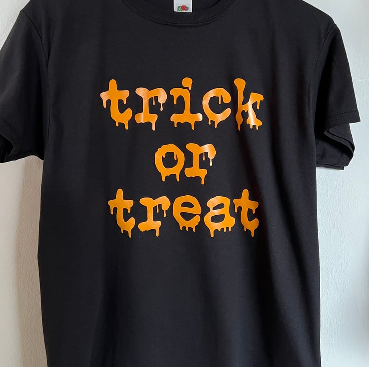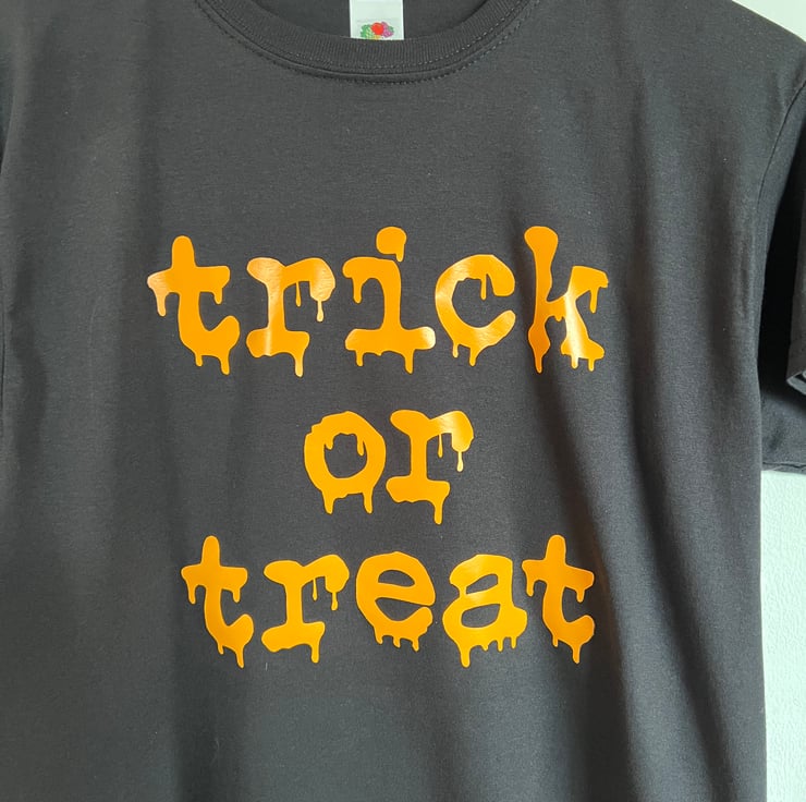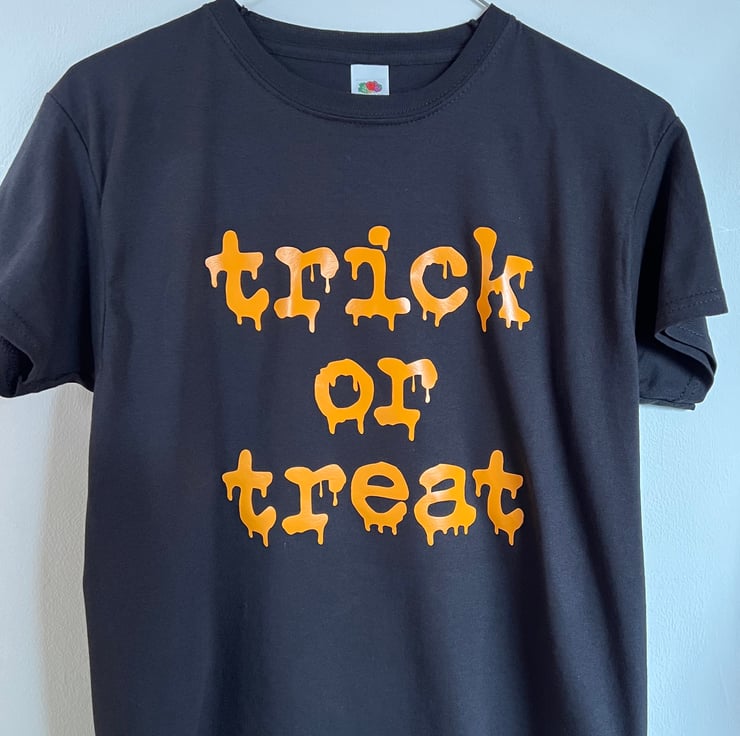 Hand crafted Customisable & Personalised Men's / Women's / Kid's Halloween T Shirt TRICK OR TREAT