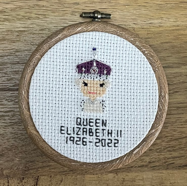 Stitched onto Aida fabric using DMC threads and placed into a 3 inch hoop.