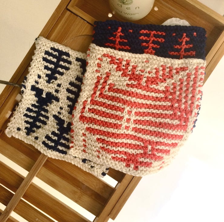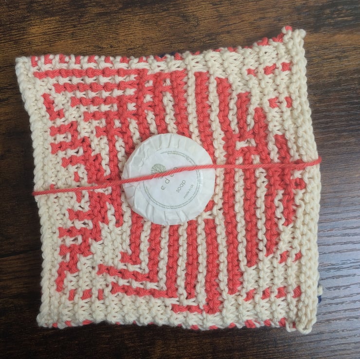 Hand knitted 100% cotton wash cloths knitted to the original Feminine Touch design.